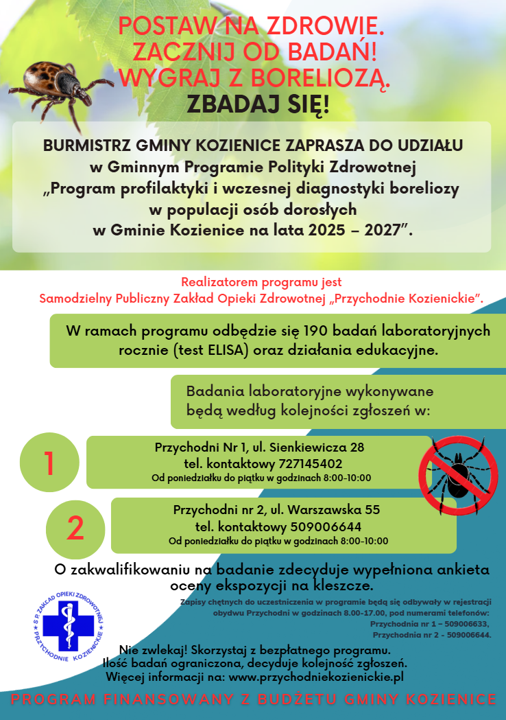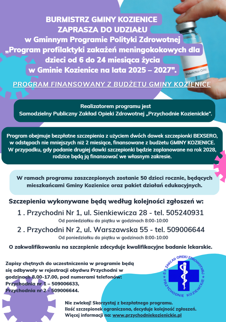 Samodzielny Publiczny Zakład Opieki Zdrowotnej "Przychodnie Kozienickie" realizuje kontrakt z NFZ w zakresach: